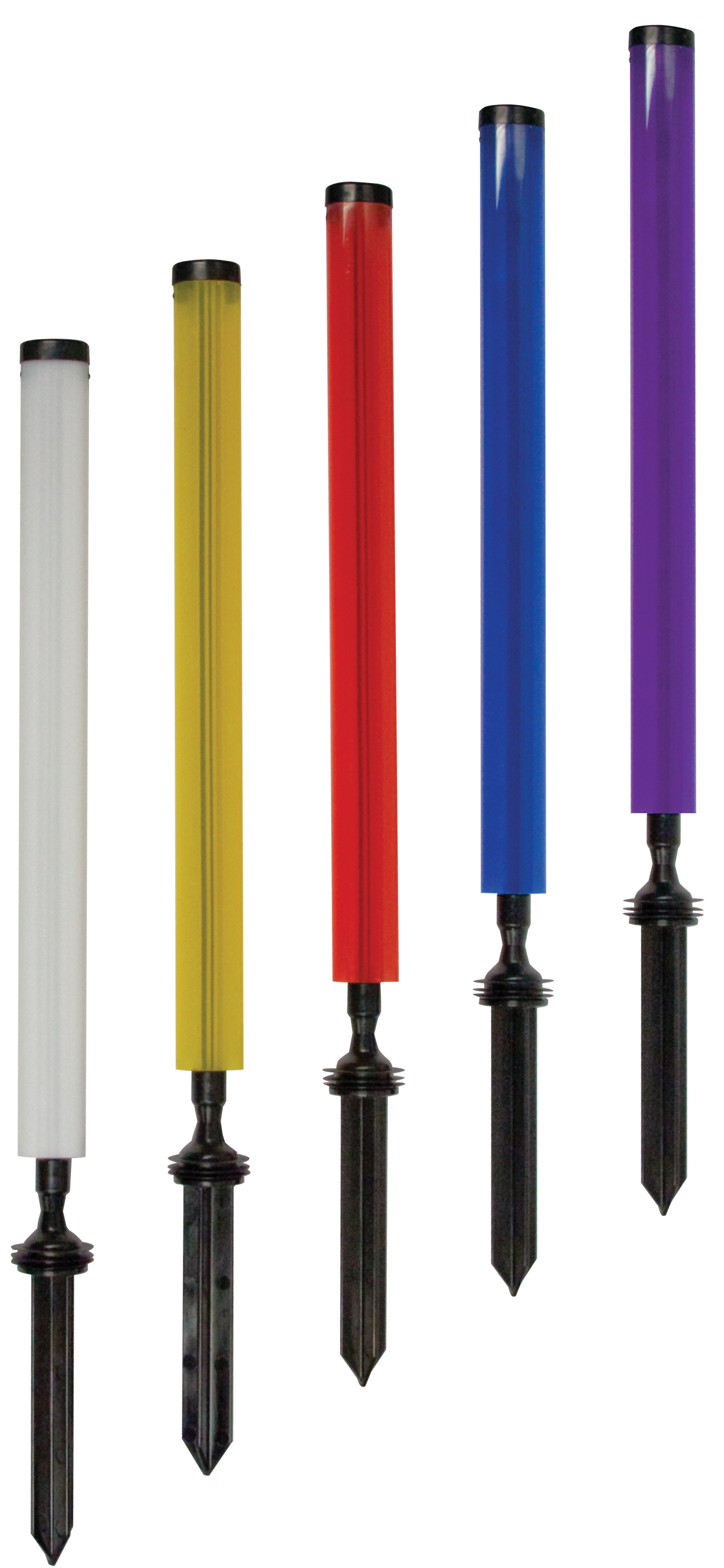 Ny og forbedret fleksibel markeringspæl Kan køres over med maskine eller clubcar fra hvilken som helst retning og den vil vippe op igen Fundament sælges separat