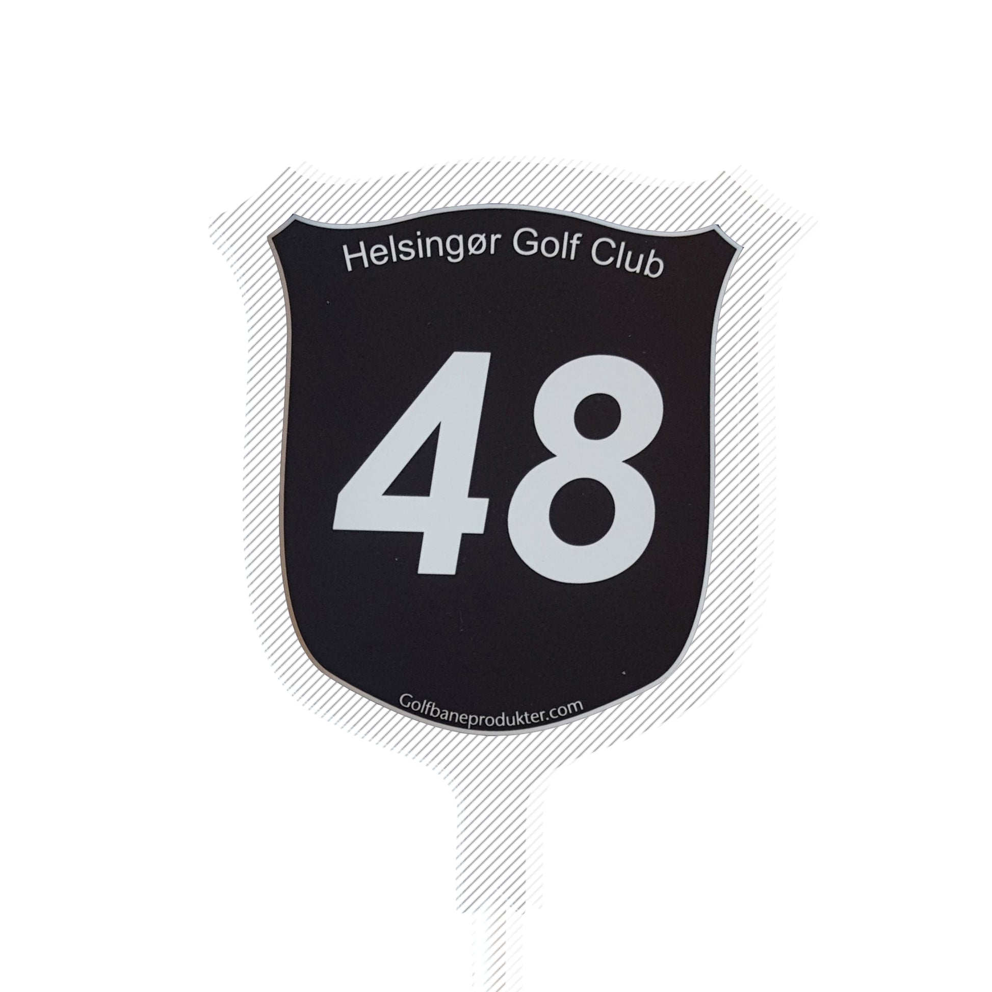 Klistermærke til skjold hektrometer systemmet. Sort baggrund og hvid tekst